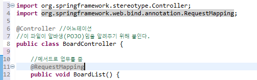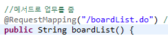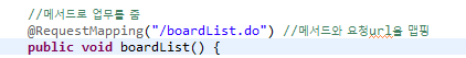 이 어노테이션(boardList)과 메서드(boardList)가 매핑되어있는것