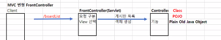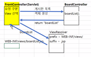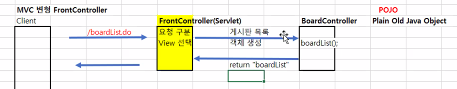 boardList가 frontController에게 리턴을 통해 boardList를 리턴해주고있음