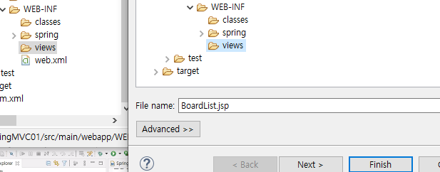 views 폴더 내에 BoardList.jsp파일 생성해준다.