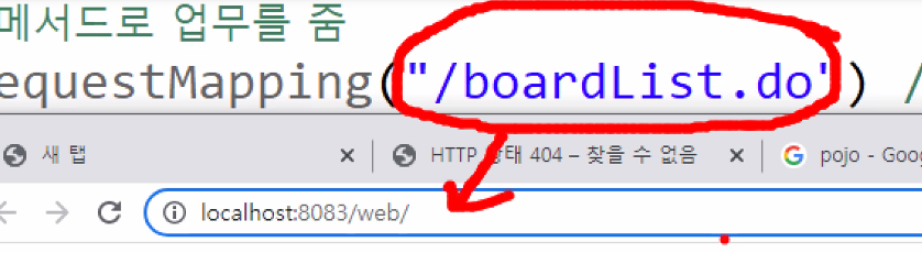 주소 context 뒤에 /boardList.do를 입력하면 boardList메서드 찾아서 알아서 실행하라는 뜻