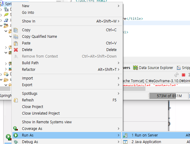 Run on Server 실행하면 지금은 404 뜨는게 정상임