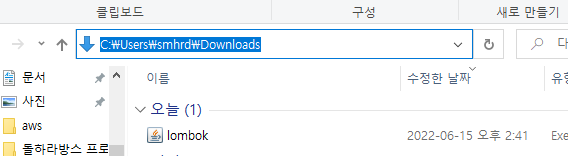 명령프롬프트에서 jar파일 실행하기 위해 경로 찾아가준다.