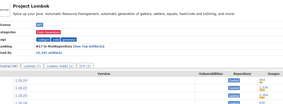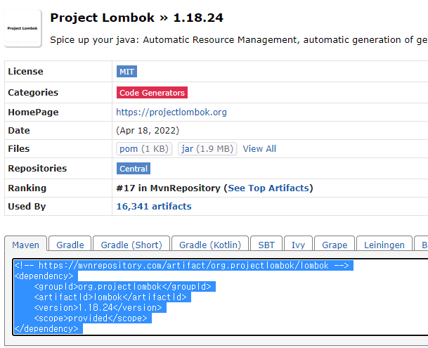 버전 정보 확인한 후 코드 복사해서 추가해준다.