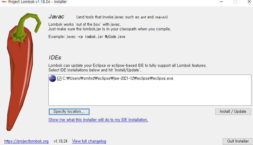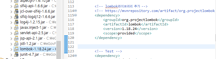 다시 전자정부프레임워크 실행해서, pom.xml에 코드 추가하여 lombok라이브러리 써보자