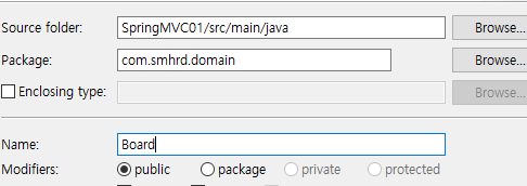 com.smhrd.domain패키지 생성하여 클래스 만들어준다.