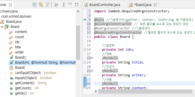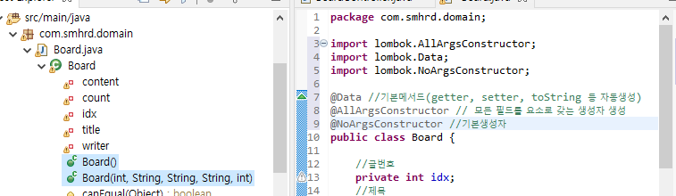 어노테이션 더 작성했더니, 생성자가 자동으로 추가되었다.