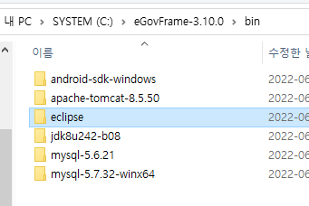 내pc - c드라이브 - 사용자 - smhrd - 전자정부폴더 - bin - eclipse